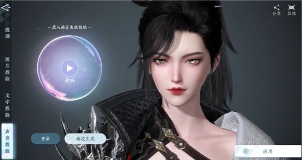 不止音色,玩家可以尝试各类角色的台词,系统会根解背后的角色灵魂来捏脸。