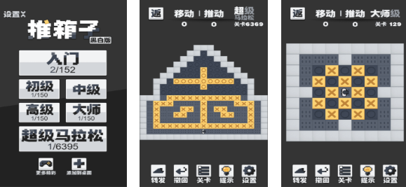 这是一款融合经典黑白画风的益智类推箱子游戏,其规则虽然简单却极具挑战性。玩家需精确推动所有箱子至目标位置,完成每一关才能通关。游戏设计灵活多样,从大师赛到马拉松挑战应有尽有,增加了解谜过程的乐趣和耐玩性。运行流畅,无需复杂操作,是一款适合动脑解谜爱好者的游戏。