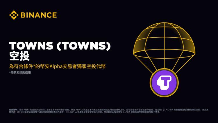 币安Alpha将于8月5日首发TOWNS代币,符合条件的用户可通过Alpha积分领取空投。具体领取细则将通过官方渠道公布。