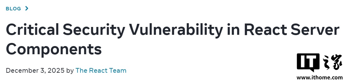 12 月 4 日消息,热门 JavaScript 框架 React 昨日发布官方公告,React Server Components 中存在一个未经身份验证的远程代码执行漏洞,建议开发者立即升级修补漏洞。