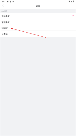 4、在语言设置界面中,选择“English”即可完成语言切换。