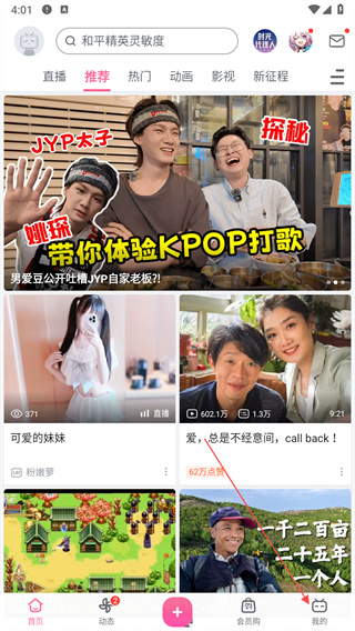 1、打开哔哩哔哩APP后,在首页底部点击“我的”图标,进入个人中心。