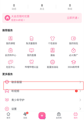 2、在“我的”页面中找到并点击【联系客服】功能。