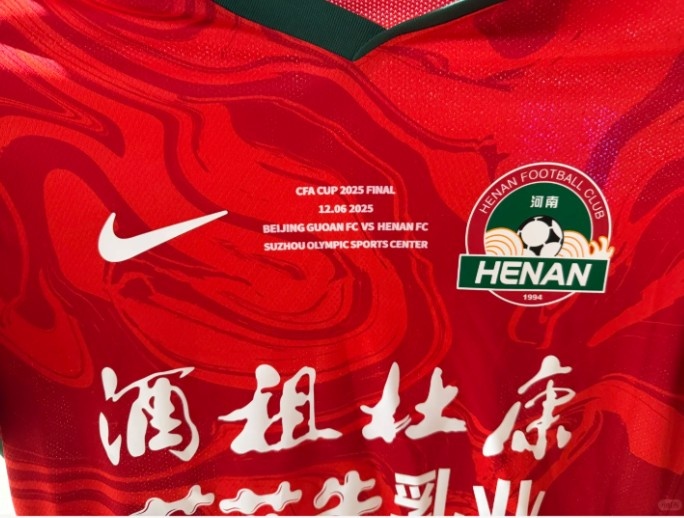 根据博主晒出的图片,河南队足协杯决赛球衣胸前印制有足协杯决赛对阵信息,另外球衣后领处还印有象征河南的大象图腾。