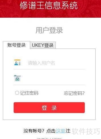 - 输入修谱王账号登录,无账号者请在下方注册新账户。