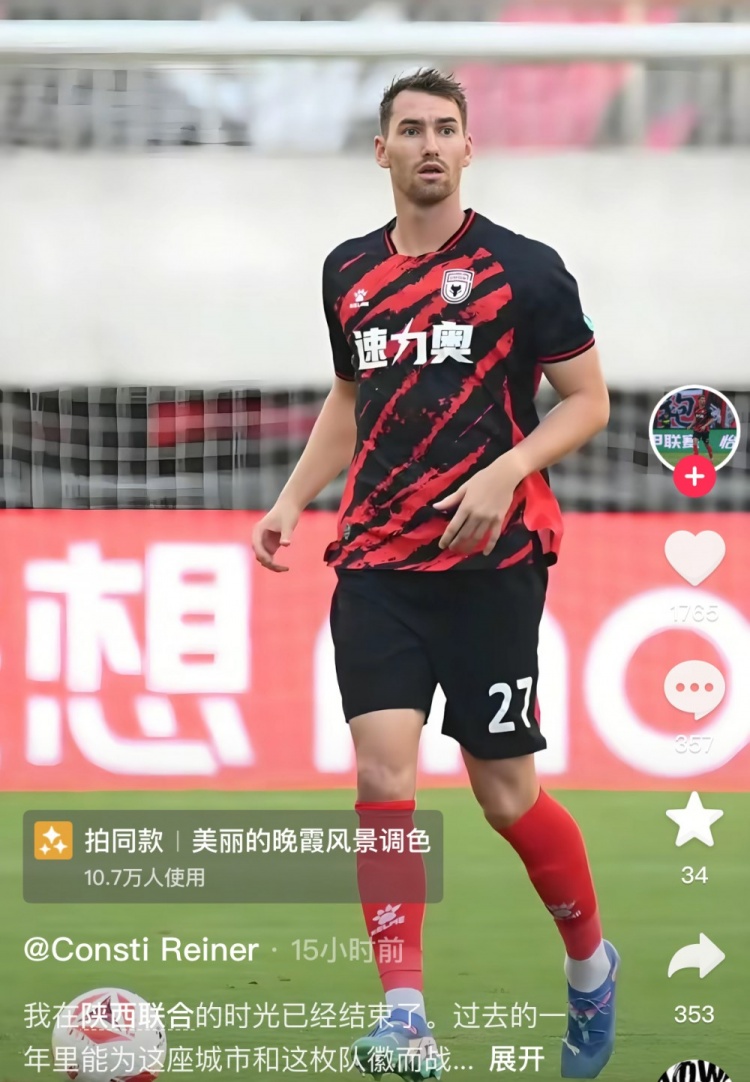 现年28岁的奥地利后卫赖纳,今年年初加盟陕西联合,共代表球队出战27场,贡献2进球和1助攻。