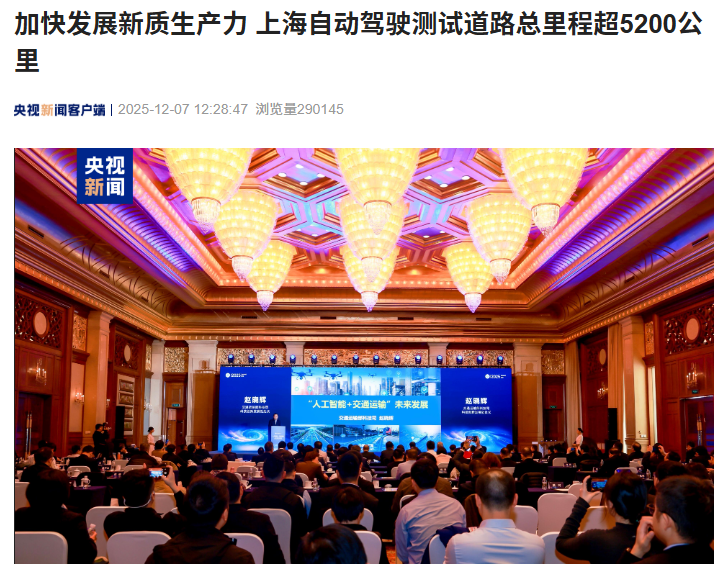 12 月 7 日消息,据央视新闻今日报道,在“‘人工智能 + 交通运输’上海发布 2025”活动上,上海交通强国科技创新建设成果正式发布,多项举措同步落地。