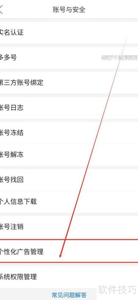 - 进入账号与安全页面,点击个性化广告管理进行设置。