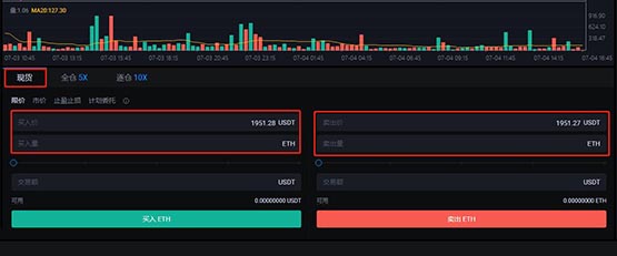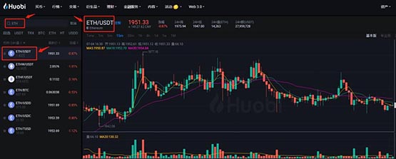 5、搜索ETH/USDT交易对并选择现货交易类型