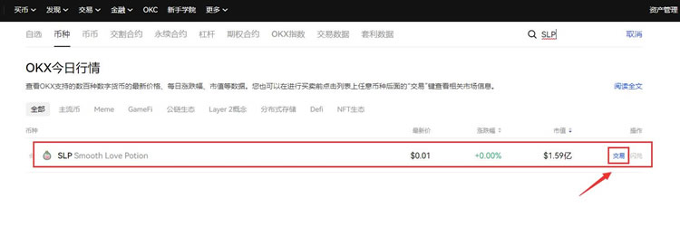 在欧易OKX平台进行SLP币交易的操作步骤简明易懂,即使是新手也能快速上手: