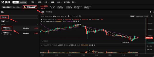 4.在交易页面选择【基础交易】,搜索RACA/USDT交易对查看实时行情。