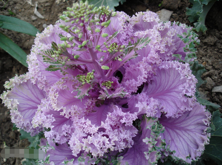 说到叶牡丹,许多人会联想到紫菜、包菜或卷心菜,其实正宗的叶牡丹应是羽衣甘蓝。它的叶片轮廓波浪形,造型复杂,犹如仙女的羽衣般飘逸动人。