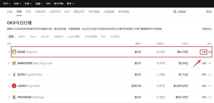 3. 搜索框输入DOGE查找狗狗币