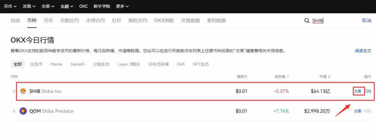 3. 搜索SHIB定位柴犬币