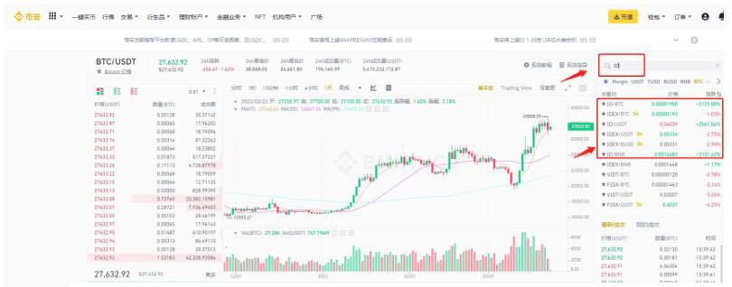 6.在搜索栏输入ID查询可用交易对,系统将自动显示匹配结果