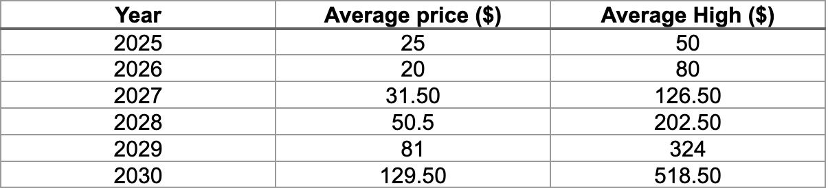 2029-2030:最乐观预测达518美元,保守估计在100-184美元区间