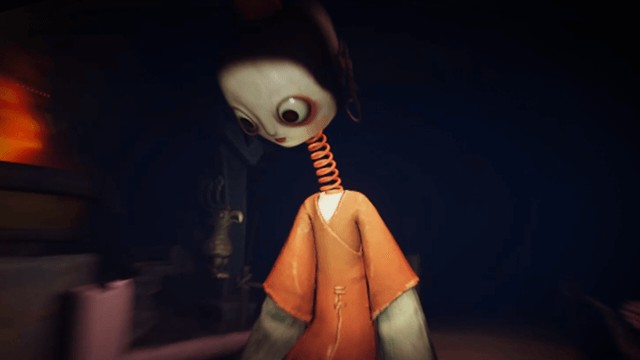 人偶拥有高个子塑料颈圈造型,对视片刻后会自行离开,不会主动攻击。