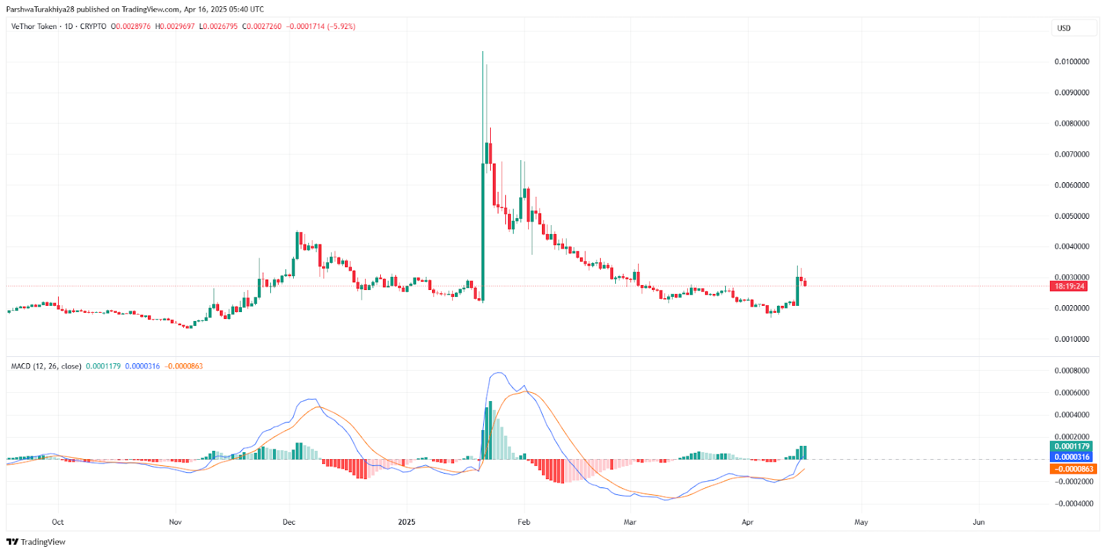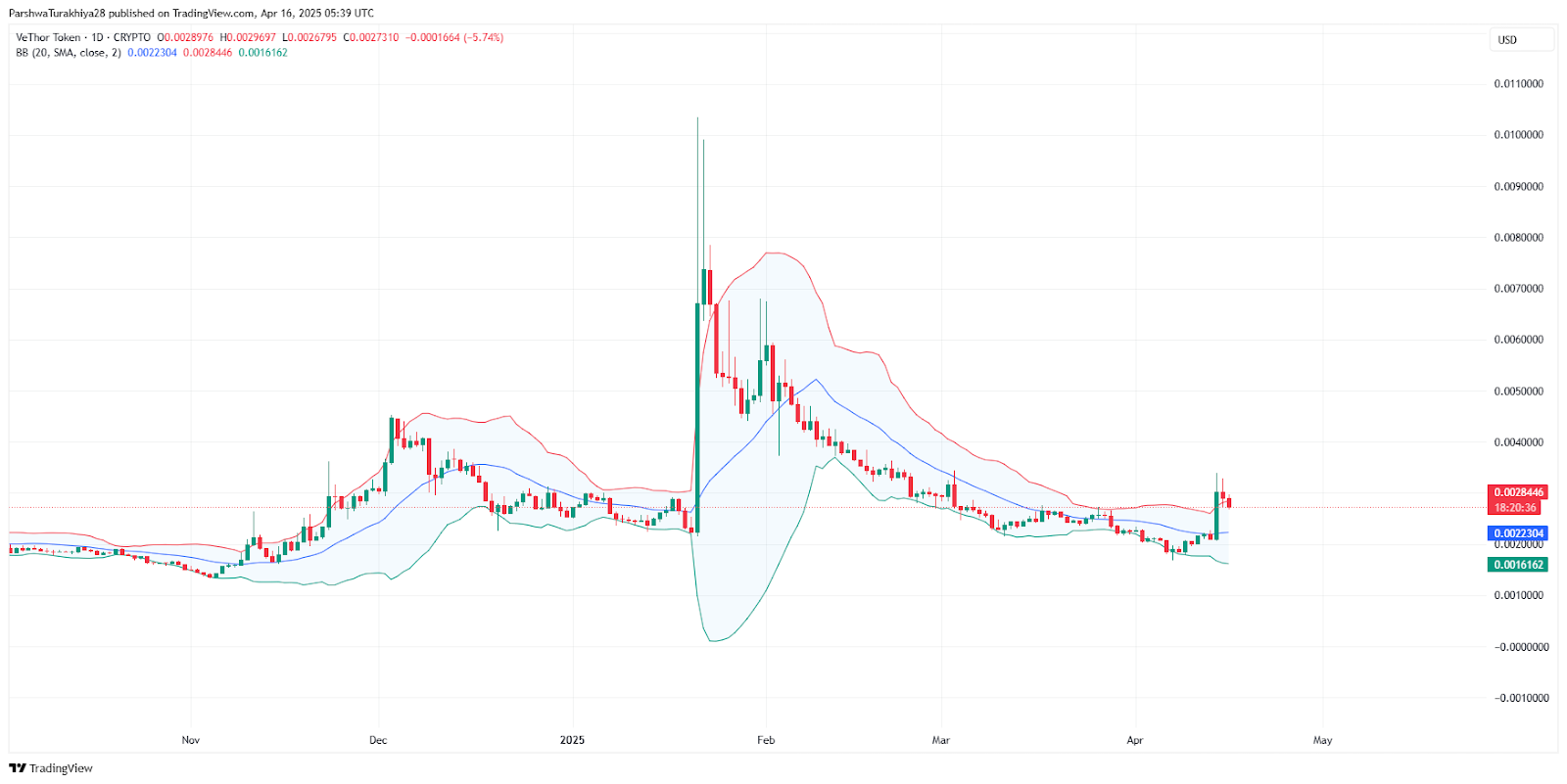 近期VTHO价格单日涨幅超40%,当前报价$0.003036,24小时交易量突破5.9亿美元。Coinbase TradingView显示机构资金正在入场,代币交易量骤增至21.6亿。