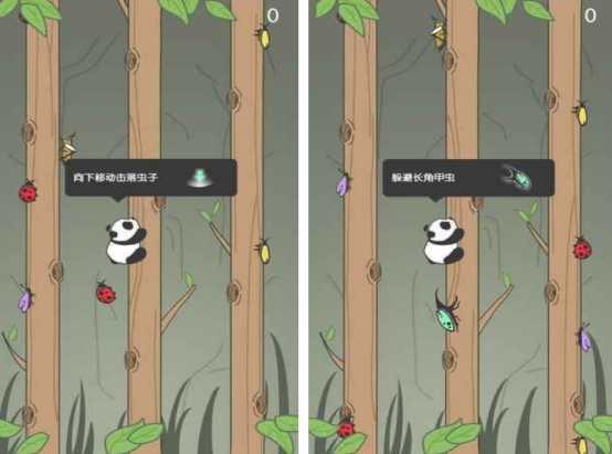 这款游戏以一只活泼的小熊猫为主角,核心玩法是不断向上攀爬树木。过程中会遇到多种真实存在的昆虫,如七星瓢虫和长角甲虫等。部分昆虫可击落获取分数,而另一些则需灵活闪避。游戏考验玩家的手眼协调与反应速度,整体节奏轻快,画面清新,完美还原了熊猫在林间穿梭的童趣场景。