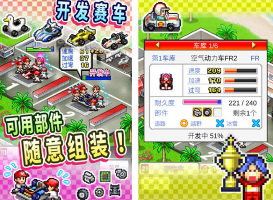 在这部以赛车为主题的模拟经营游戏中,你将扮演车队经理,致力于打造一支冠军级的赛车队伍。从车辆的组装到零件的强化,每个环节都完全自由定制,采用标志性的像素美术风格,角色和赛车造型生动有趣。通过科学运营与技术升级,带领你的车队在各项赛事中脱颖而出,赢得荣耀与丰厚收益。