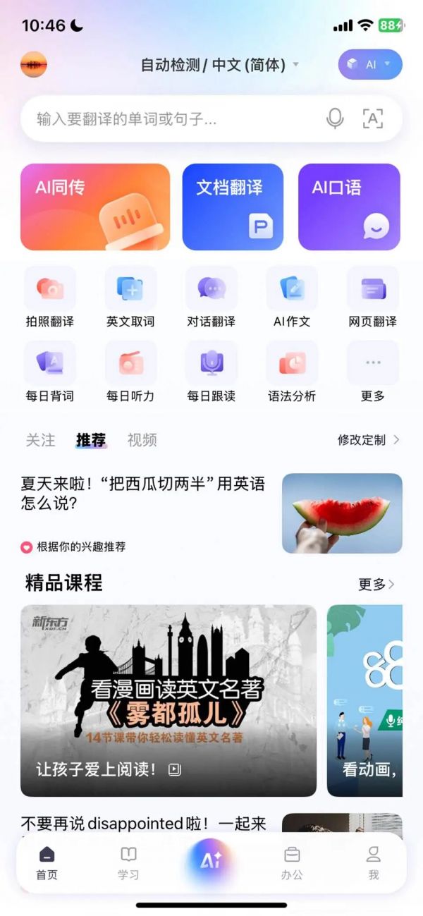 全新推出「办公」专属Tab,聚合文档翻译、网页翻译、格式转换等硬核功能,并提升文档内容管理能力: