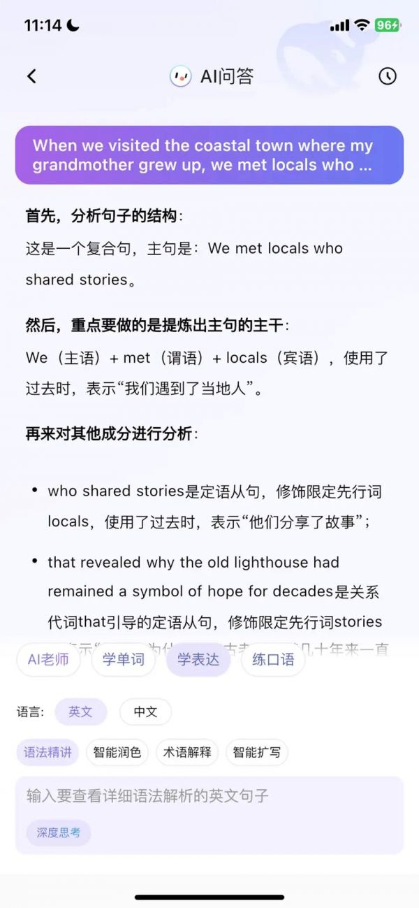 ·输入英文句子:AI拆解语法结构,提供润色建议,让表达更地道。