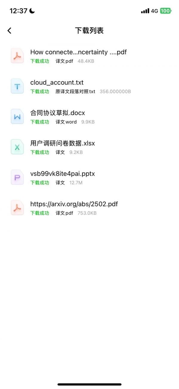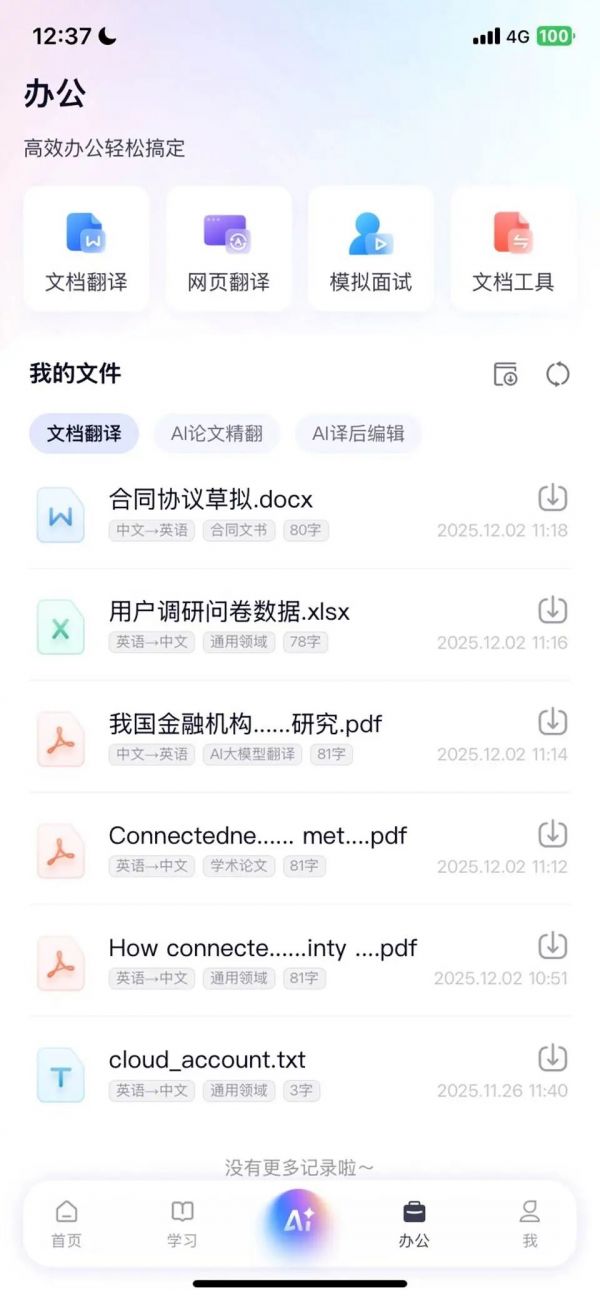 ·新增「我的文件」模块,支持PDF、Word、Excel等多种格式的历史记录查看与复用。