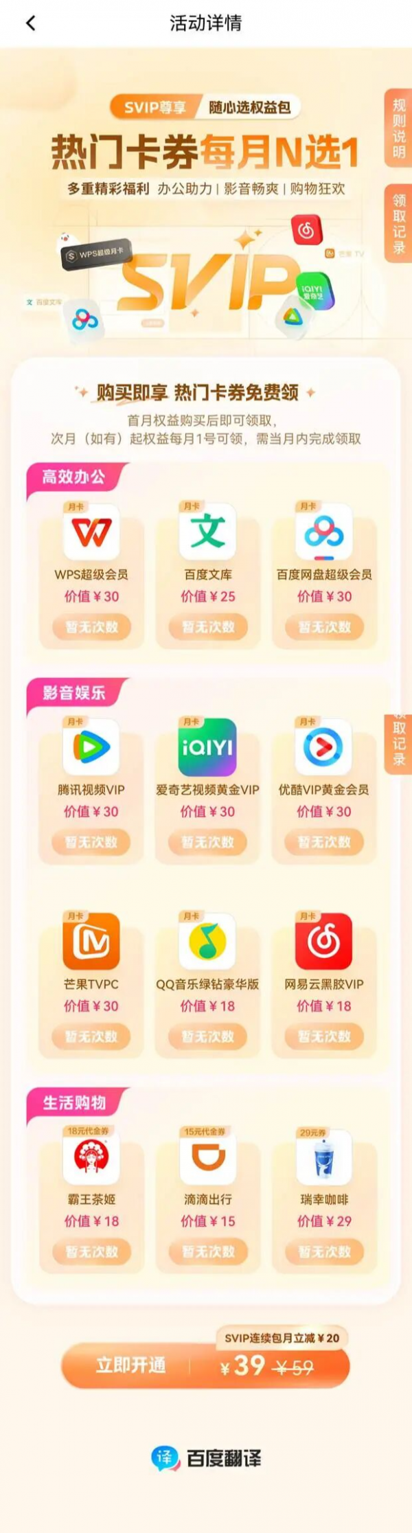 SVIP 新人首月立减20元,会员随心选,买1得2