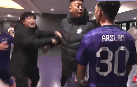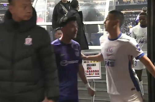 直播吧12月10日讯 亚冠精英联赛东亚区第6轮,广岛三箭vs上海申花,比赛上半场结束后,广岛三箭外援阿尔斯兰在球员通道挑衅高天意,双方一度爆发冲突。