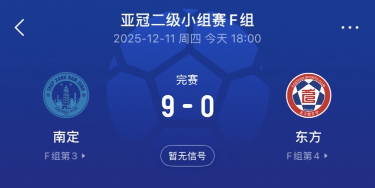 直播吧12月11日讯 亚冠二级联赛F组第6轮,南定9-0大胜东方但仍无缘晋级。