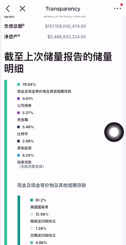 通过下图可以了解USDT的储备构成:80%为现金及现金等价物,剩余部分为其他价值储备资产,确保其稳定性。