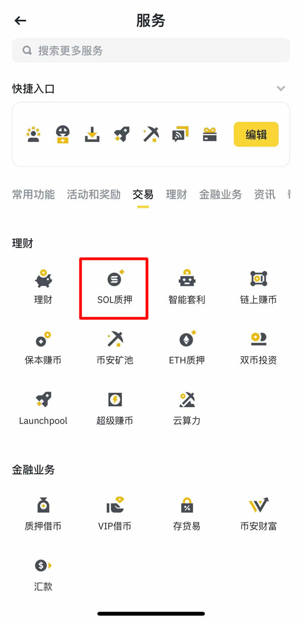 1. 进入理财专区选择SOL质押功能