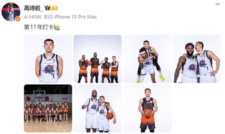 新赛季倒计时!高诗岩晒山东男篮定妆照:第11年打卡