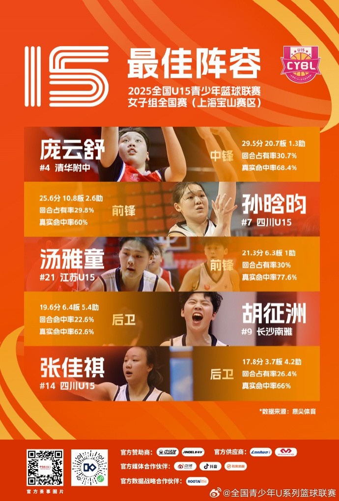 聚光灯下!2025全国U15青少年篮球联赛女子组全国赛最佳阵容出炉✨
