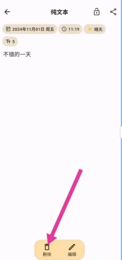 在日记详情页面,点击底部的删除。