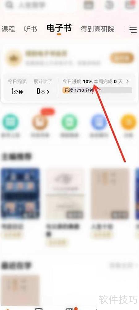- 进入电子书频道,点击顶部今日进度图标即可查看。