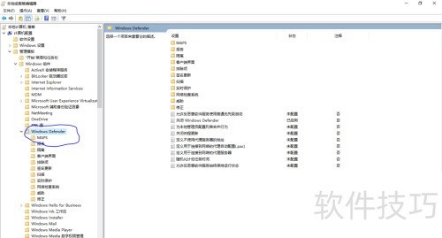 - 进入计算机配置,依次选择管理模板、Windows组件,最后打开Windows Defender选项。