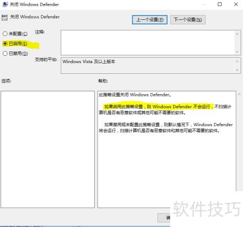 在右键菜单上点击关闭Windows Defender的选项,然后选择已启用进行调整。这实际上意味着功能已经被关闭。