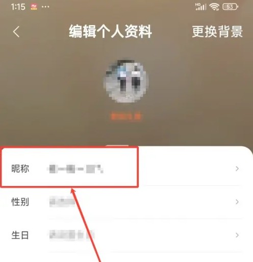在出现的页面中点击【昵称】