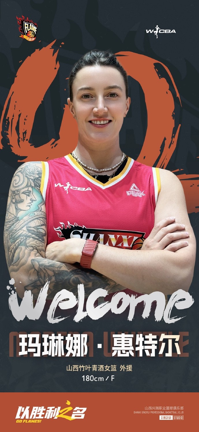 今天我们很高兴地宣布:澳大利亚三人篮球国家队核心球员玛琳娜·惠特尔(Marena Whittle)正式签约加盟山西竹叶青酒女篮,将身披42号红色战袍征战接下来的WCBA赛程!