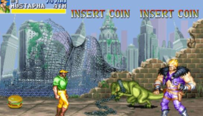 会飞跃技能,从一边飞到另一边.对付这BOSS一定要经常走动,要不然无论是连拳,黑虎掏心或者是左轮射击都能让你吃不了兜着走.最好用跑动攻击.除非你是高手,否则切不可为了贪分而接近他恐龙快打用特技攻击.BOSS叫喽罗的时候也是个很好的攻击机会.