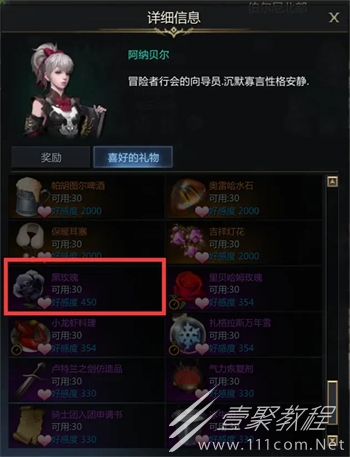 喜欢的礼物:黑玫瑰+450,该礼物可以在卢特兰西部的流浪商人处购买获得;