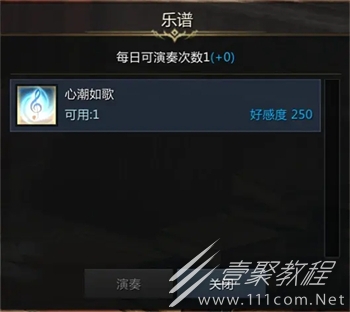 乐谱喜好:心潮如歌,好感度+250