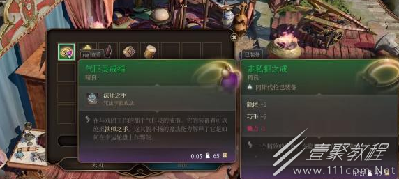 然后就选择队伍之中的盗贼,使用作弊技能就获取到气巨灵戒指。