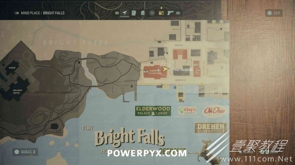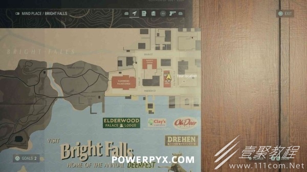 返回汽车,与左侧车门互动开车前往辉落镇,到达古木宫殿旅馆后,进入宫殿与右后方的私人房间内的鹿头互动。