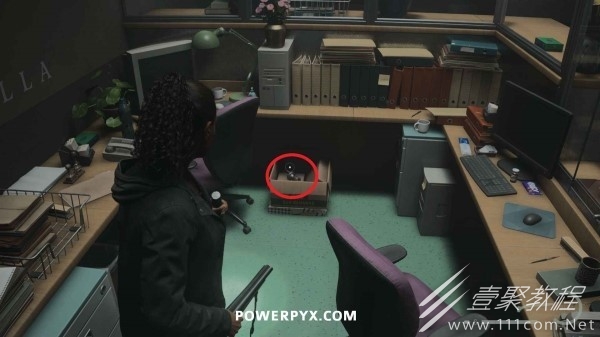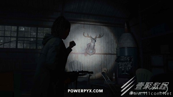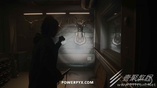 到达保健中心的保安室后,输入密码170823或081723通过电脑打开大门。往北走到员工休息室和接诊台后方,打开接诊台后面的一个箱子,然后返回保安室,打开保安室右边的门即可找到猎枪,鹿头就和猎枪在同一个房间里。