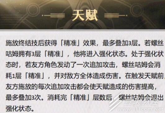 2、在强化后伤害提升,并且会触发天赋,但是需要消耗“精密度”1层。