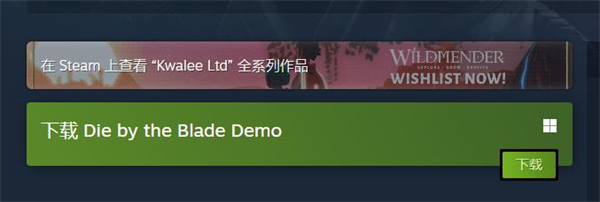 3、在相应的游戏页面,玩家可以看到下载Die by the Blade Demo的选项,玩家只需要点击下载,下载完成之后即可游玩。